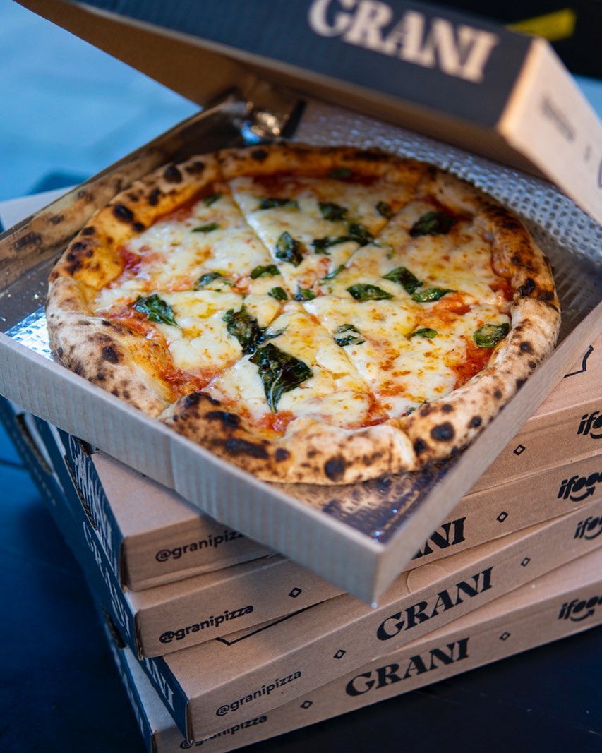 Molho de tomate italiano, mozzarella de búfala, azeite de oliva, parmesão e manjericão fresco.